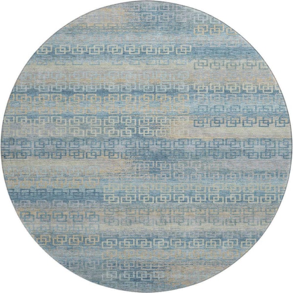 Mayfield Premium Machine Washable Abstract AMF2029 Teal 8 ft. x 8 ft. Round Rug