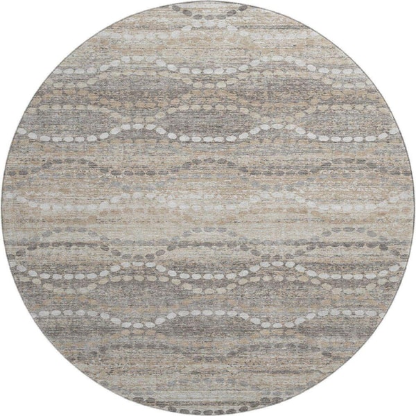 Mayfield Premium Machine Washable Abstract AMF2030 Beige 8 ft. x 8 ft. Round Rug