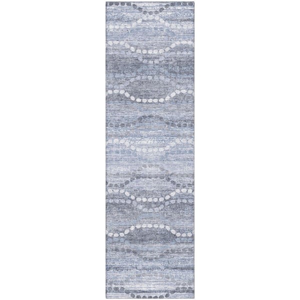 Mayfield Premium Machine Washable Abstract AMF2030 Blue 2 ft. x 7 ft. Runner Rug