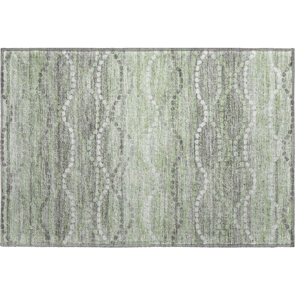 Mayfield Premium Machine Washable Abstract AMF2030 Green 2 ft. x 3 ft. Accent Rug