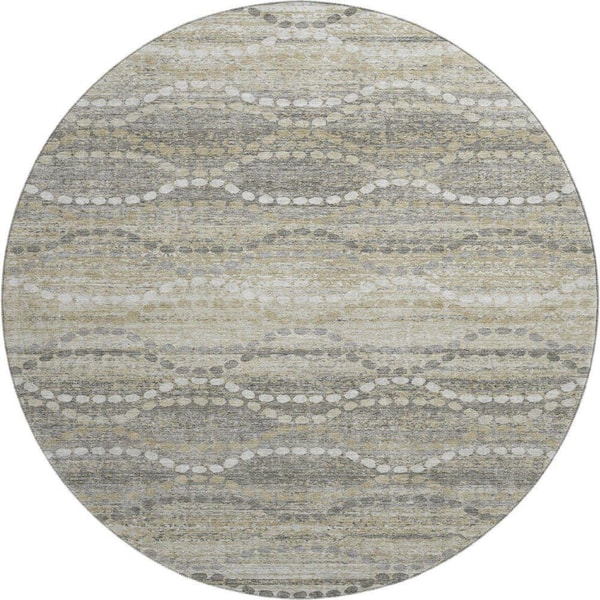 Mayfield Premium Machine Washable Abstract AMF2030 Pewter 8 ft. x 8 ft. Round Rug