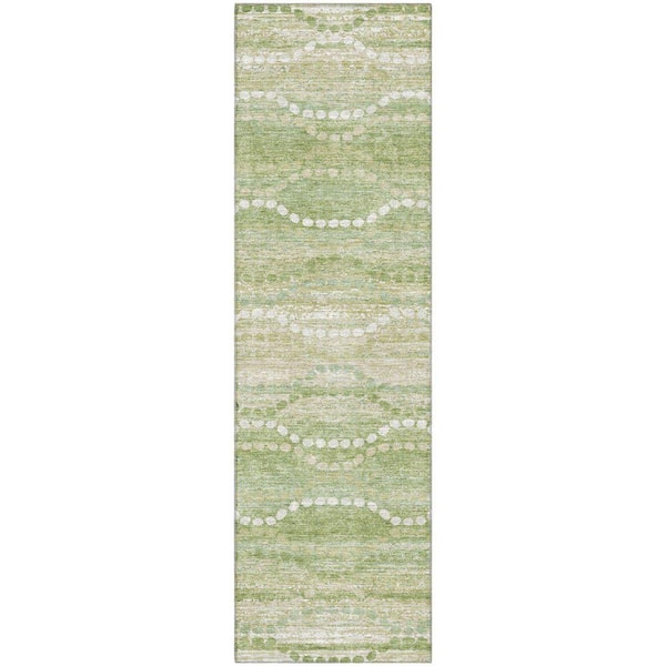 Mayfield Premium Machine Washable Abstract AMF2030 Sage 2 ft. x 7 ft. Runner Rug
