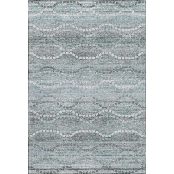 Mayfield Premium Machine Washable Abstract AMF2030 Teal 5 ft. x 7 ft. 6 in. Area Rug