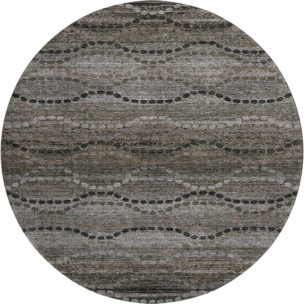 Mayfield Premium Machine Washable Abstract AMF2031 Chocolate 8 ft. x 8 ft. Round Rug