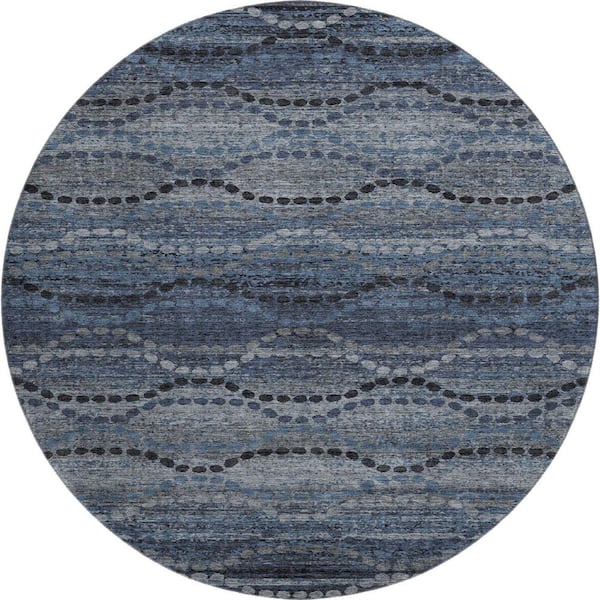 Mayfield Premium Machine Washable Abstract AMF2031 Navy 8 ft. x 8 ft. Round Rug