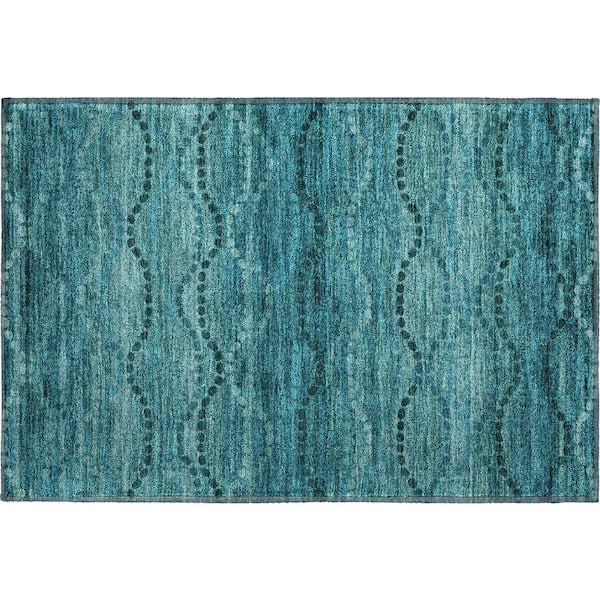 Mayfield Premium Machine Washable Abstract AMF2031 Turquoise 2 ft. x 3 ft. Accent Rug