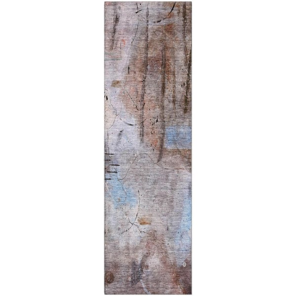 Mayfield Premium Machine Washable Abstract AMF2032 Taupe 2 ft. x 7 ft. Runner Rug