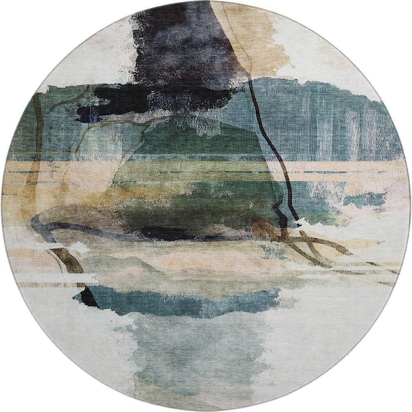 Mayfield Premium Machine Washable Abstract AMF2033 Green 8 ft. x 8 ft. Round Rug