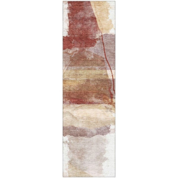 Mayfield Premium Machine Washable Abstract AMF2033 Terracotta 2 ft. x 7 ft. Runner Rug