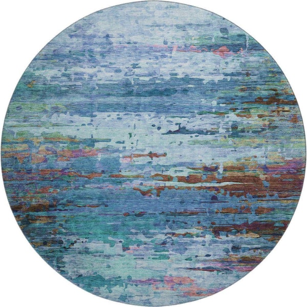 Mayfield Premium Machine Washable Abstract AMF2035 Blue 8 ft. x 8 ft. Round Rug