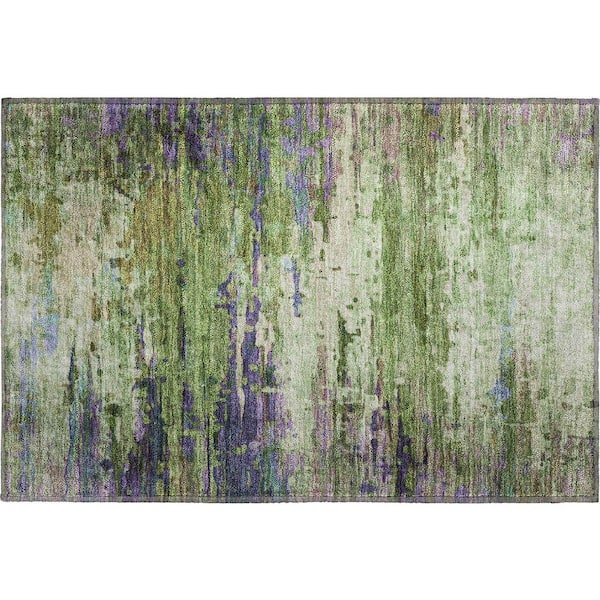 Mayfield Premium Machine Washable Abstract AMF2035 Green 2 ft. x 3 ft. Accent Rug