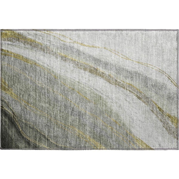 Mayfield Premium Machine Washable Abstract AMF2036 Aloe 2 ft. x 3 ft. Accent Rug