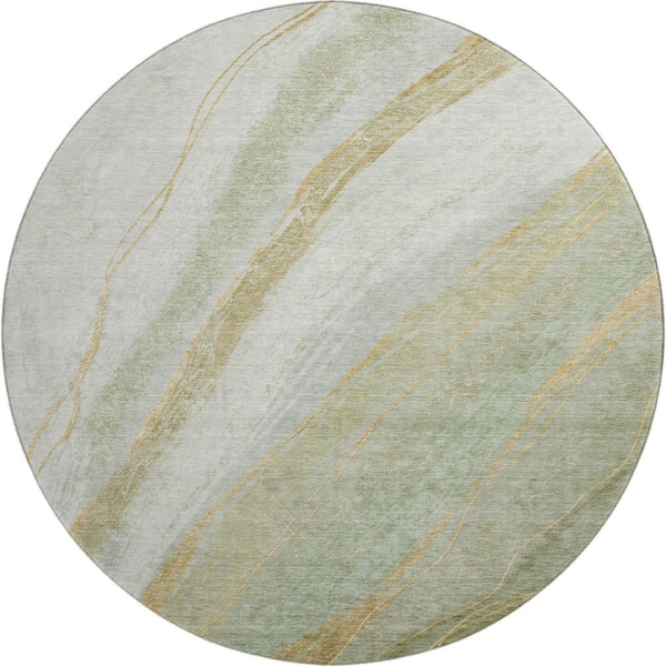 Mayfield Premium Machine Washable Abstract AMF2036 Sage 8 ft. x 8 ft. Round Rug