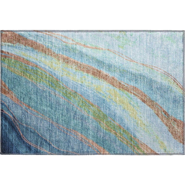 Mayfield Premium Machine Washable Abstract AMF2037 Blue 2 ft. x 3 ft. Accent Rug