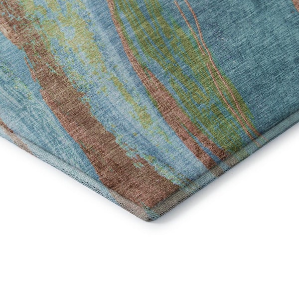 Mayfield Premium Machine Washable Abstract AMF2037 Blue 3 ft. x 5 ft. Area Rug