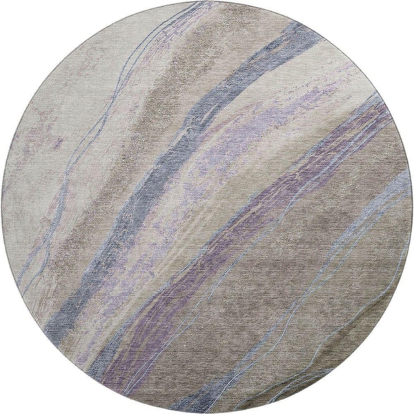 Mayfield Premium Machine Washable Abstract AMF2037 Mocha 8 ft. x 8 ft. Round Rug