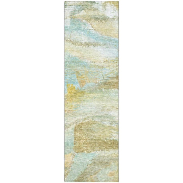 Mayfield Premium Machine Washable Abstract AMF2039 Beige 2 ft. x 7 ft. Runner Rug