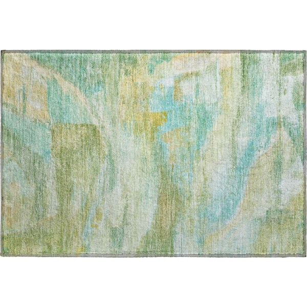 Mayfield Premium Machine Washable Abstract AMF2039 Green 2 ft. x 3 ft. Accent Rug