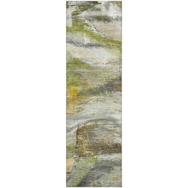 Mayfield Premium Machine Washable Abstract AMF2039 Olive 2 ft. x 7 ft. Runner Rug