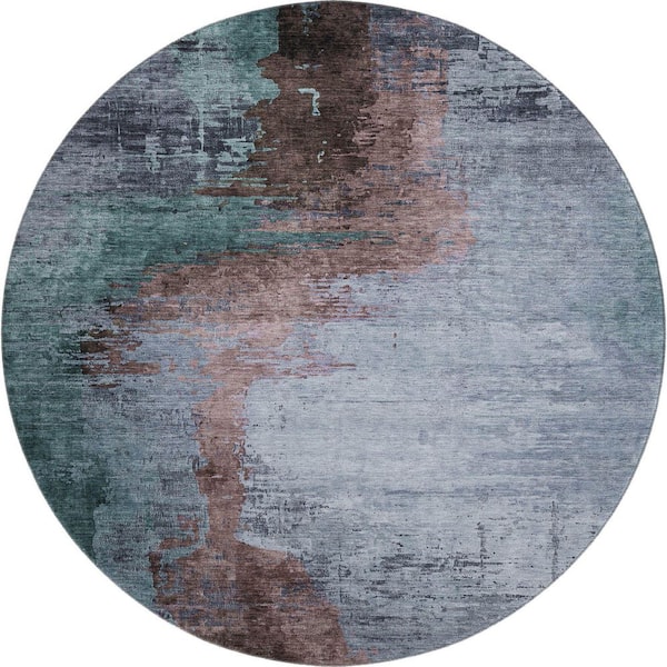 Mayfield Premium Machine Washable Abstract AMF2041 Blue 8 ft. x 8 ft. Round Rug