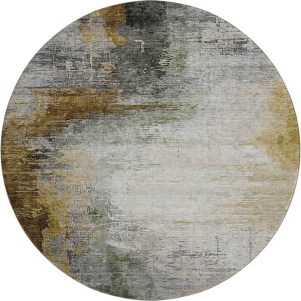Mayfield Premium Machine Washable Abstract AMF2041 Chocolate 8 ft. x 8 ft. Round Rug