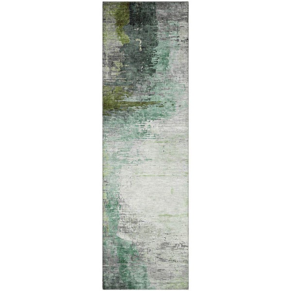 Mayfield Premium Machine Washable Abstract AMF2041 Green 2 ft. x 7 ft. Runner Rug