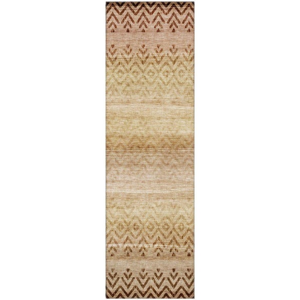 Mayfield Premium Machine Washable Abstract AMF2042 Beige 2 ft. x 7 ft. Runner Rug
