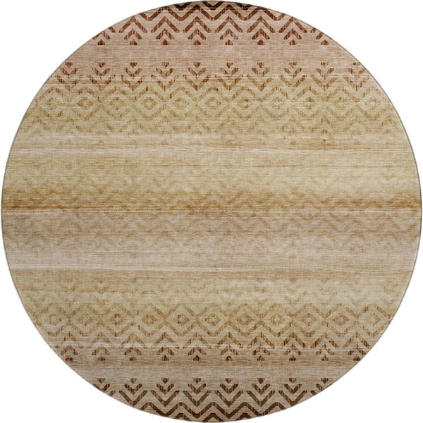 Mayfield Premium Machine Washable Abstract AMF2042 Beige 8 ft. x 8 ft. Round Rug