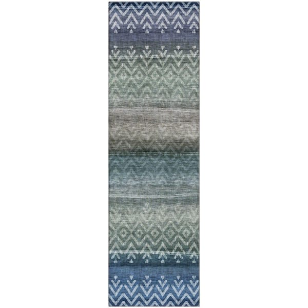 Mayfield Premium Machine Washable Abstract AMF2042 Blue 2 ft. x 7 ft. Runner Rug