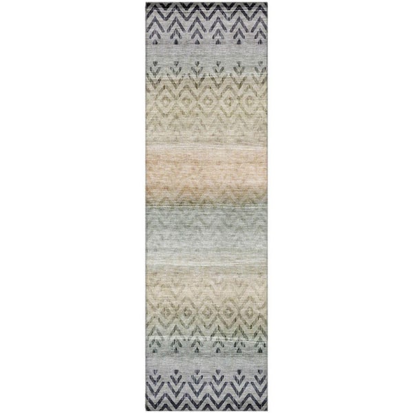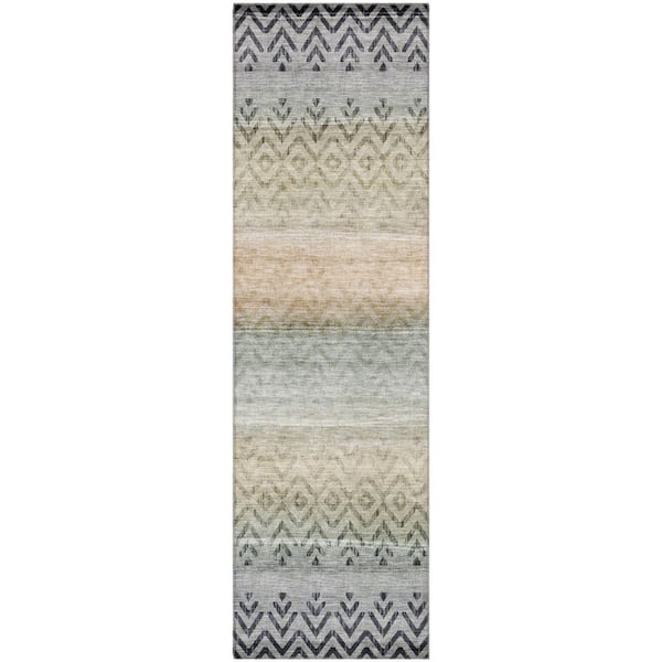 Mayfield Premium Machine Washable Abstract AMF2042 Gray 2 ft. x 7 ft. Runner Rug