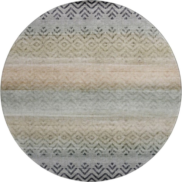 Mayfield Premium Machine Washable Abstract AMF2042 Gray 8 ft. x 8 ft. Round Rug