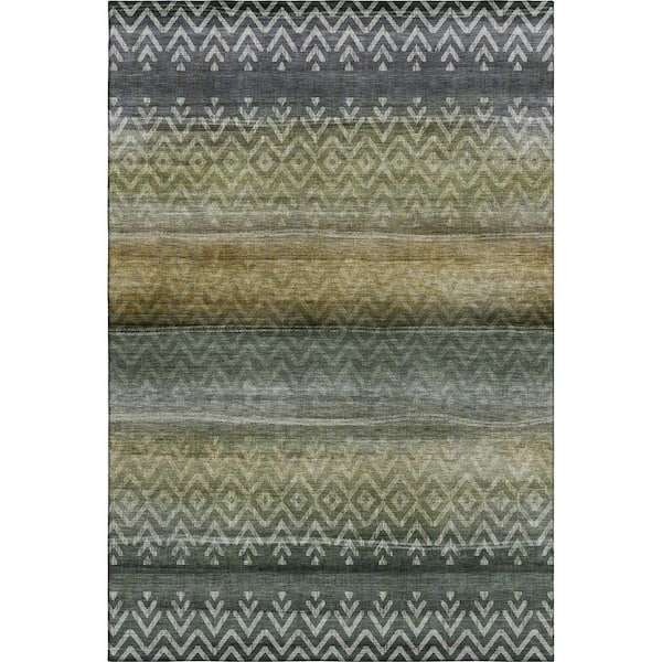 Mayfield Premium Machine Washable Abstract AMF2042 Green 3 ft. x 5 ft. Area Rug