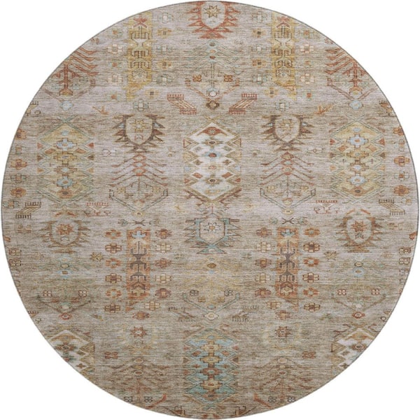 Mayfield Premium Machine Washable Abstract AMF2047 Beige 8 ft. x 8 ft. Round Rug