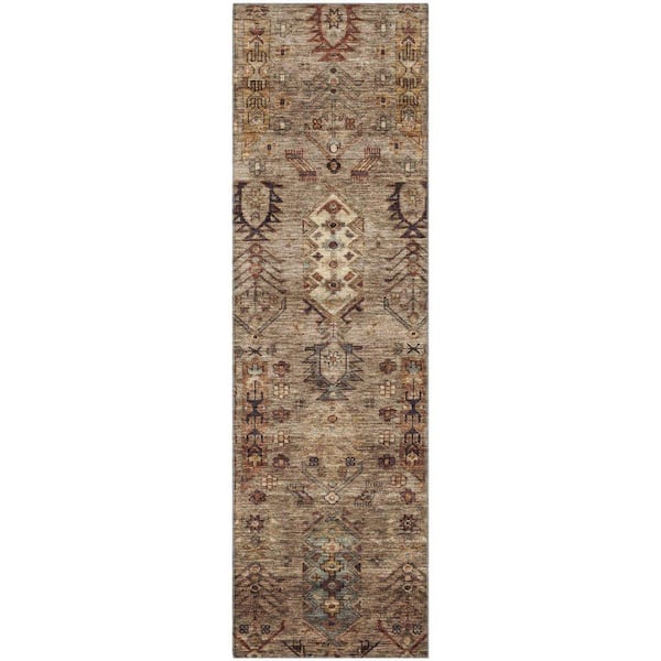 Mayfield Premium Machine Washable Abstract AMF2047 Brown 2 ft. x 7 ft. Runner Rug