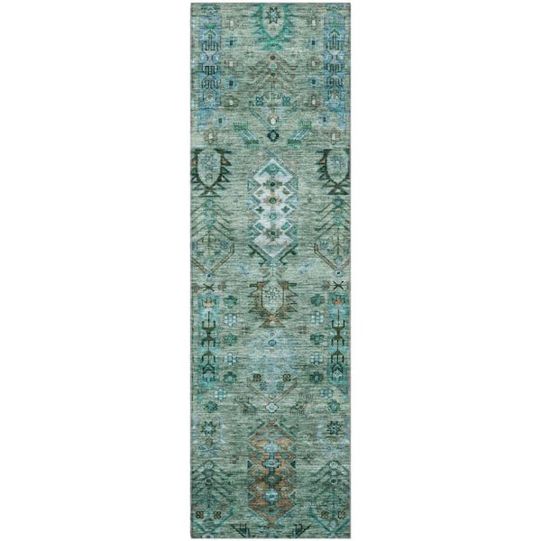 Mayfield Premium Machine Washable Abstract AMF2047 Green 2 ft. x 7 ft. Runner Rug