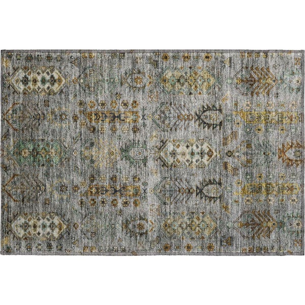 Mayfield Premium Machine Washable Abstract AMF2047 Pewter 2 ft. x 3 ft. Accent Rug