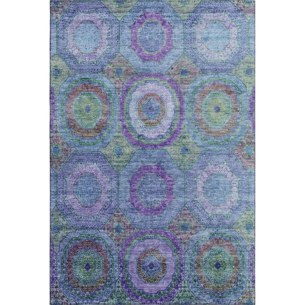 Mayfield Premium Machine Washable Abstract AMF2049 Blue 10 ft. x 14 ft. Area Rug