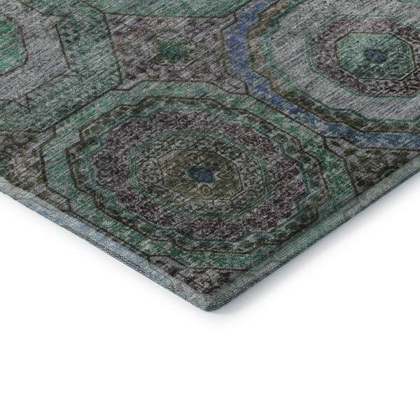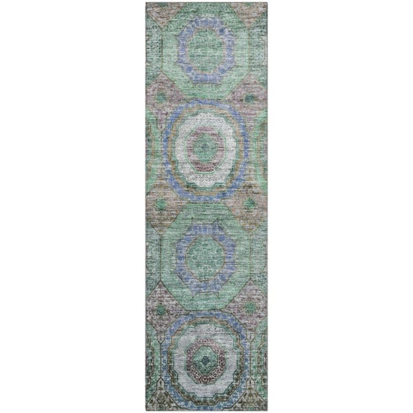 Mayfield Premium Machine Washable Abstract AMF2049 Green 2 ft. x 7 ft. Runner Rug
