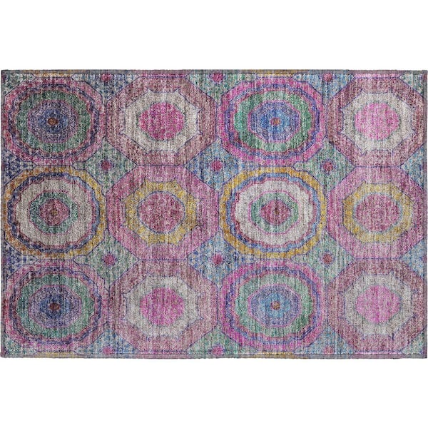 Mayfield Premium Machine Washable Abstract AMF2049 Pink 2 ft. x 3 ft. Accent Rug
