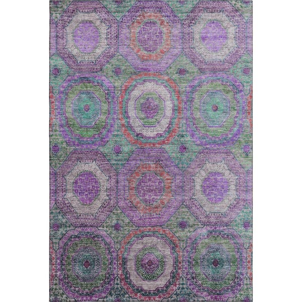 Mayfield Premium Machine Washable Abstract AMF2049 Purple 3 ft. x 4 ft. Area Rug