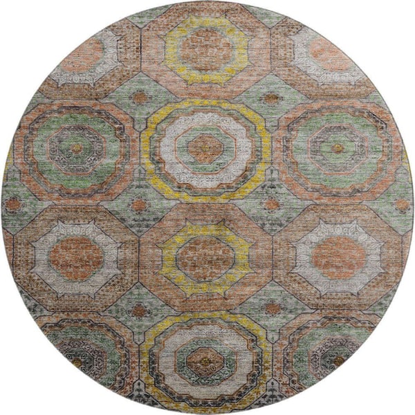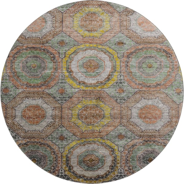 Mayfield Premium Machine Washable Abstract AMF2050 Sage 8 ft. x 8 ft. Round Rug