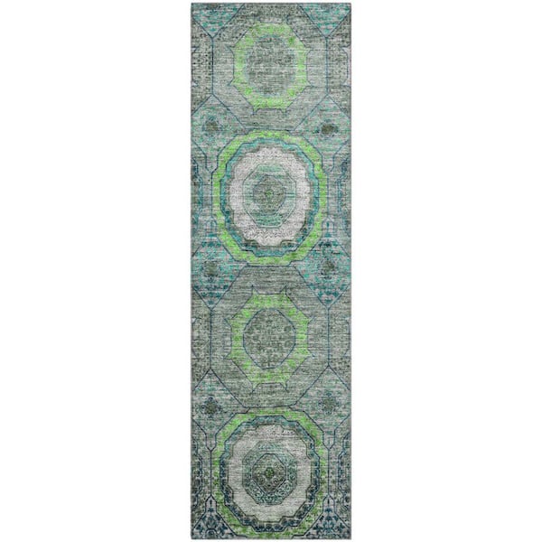 Mayfield Premium Machine Washable Abstract AMF2050 Teal 2 ft. x 7 ft. Runner Rug