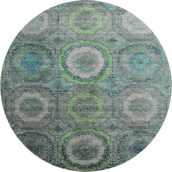 Mayfield Premium Machine Washable Abstract AMF2050 Teal 8 ft. x 8 ft. Round Rug