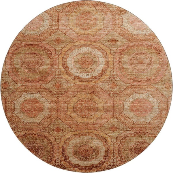 Mayfield Premium Machine Washable Abstract AMF2050 Terracotta 8 ft. x 8 ft. Round Rug