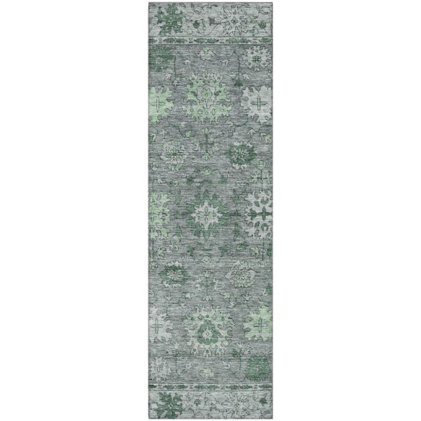Mayfield Premium Machine Washable Abstract AMF2051 Aloe 2 ft. x 7 ft. Runner Rug