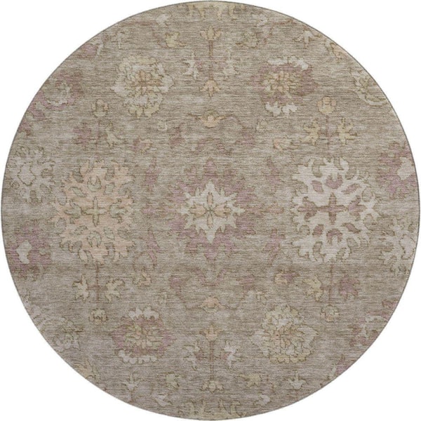 Mayfield Premium Machine Washable Abstract AMF2051 Khaki 8 ft. x 8 ft. Round Rug