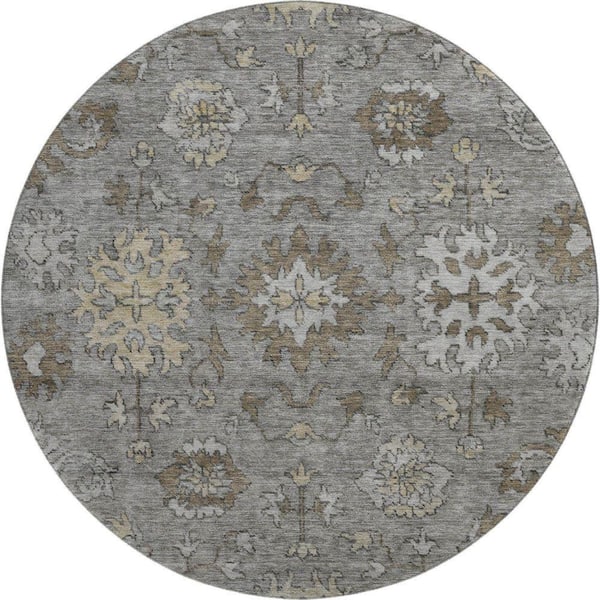 Mayfield Premium Machine Washable Abstract AMF2051 Pewter 8 ft. x 8 ft. Round Rug