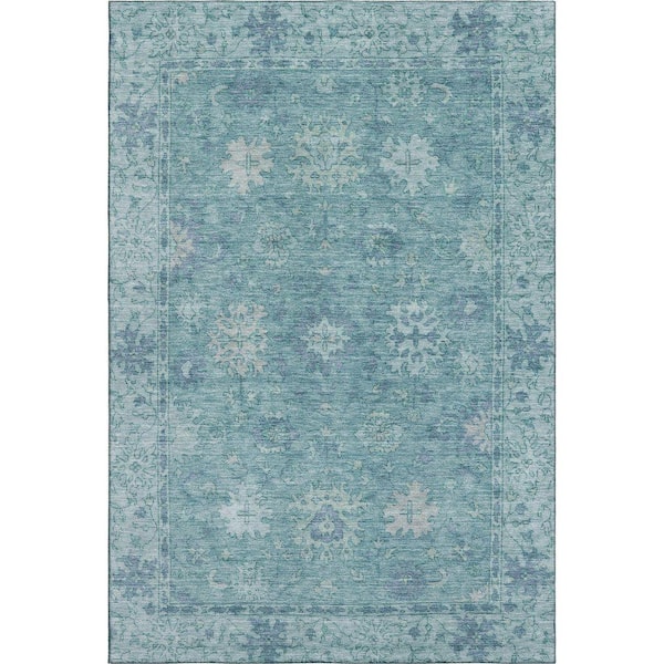 Mayfield Premium Machine Washable Abstract AMF2051 Teal 3 ft. x 5 ft. Area Rug