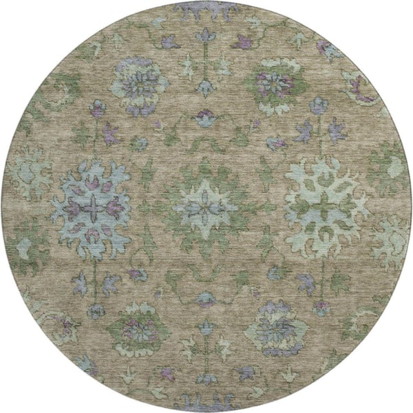 Mayfield Premium Machine Washable Abstract AMF2052 Brown 8 ft. x 8 ft. Round Rug
