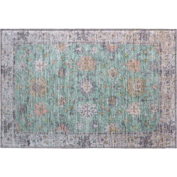 Mayfield Premium Machine Washable Abstract AMF2052 Mint 2 ft. x 3 ft. Accent Rug